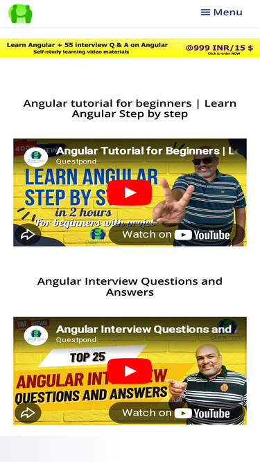 100%learn angular step by step with questpond team. here you will get all the learning resources available for angular like videos, articles and e-books