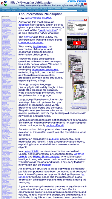 74%information philosopher is dedicated to the new information philosophy, with explanations for freedom, values, and knowledge.