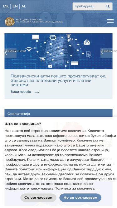 87%web страната на нбрм содржи податоци и информации за монетарната политика, банкарскиот систем, банкарската супервизија и регулатива, финансиската стабилност, истражува~ката работа, платните системи, финансиските пазари, македонските пари, нузматиката и др.