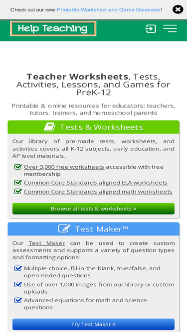 74%helpteaching.com provides prek-12 and college-level educators, tutors, and homeschool parents with custom and pre-made teaching resources for printable or online use.
