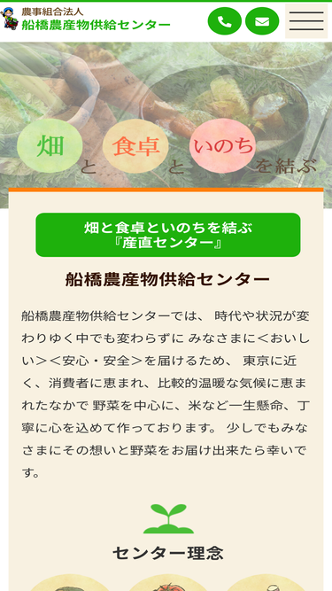87%千葉県の北総地域を中心に、約120名の生産者によって野菜を中心にお米・果物も生産ししています。生産者と消費者を結ぶ、「畑と食卓といのちを結ぶ」活動をしている 産直センターです。日本の農業を守るため消費者との結びつきを大切にし励んでおります。