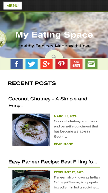 74%My Eating Space is all about preparing and sharing healthy recipes. All recipes I share are tried and true delicious.