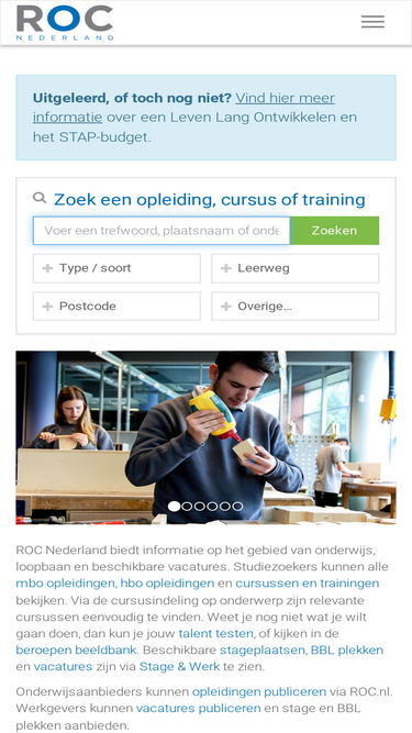 55%vind jouw opleiding, cursus, training, job of stage op roc.nl! wij helpen studenten, stagiaires en werkzoekenden bij hun zoektocht naar de juiste studie, stageplek of werkgever.
