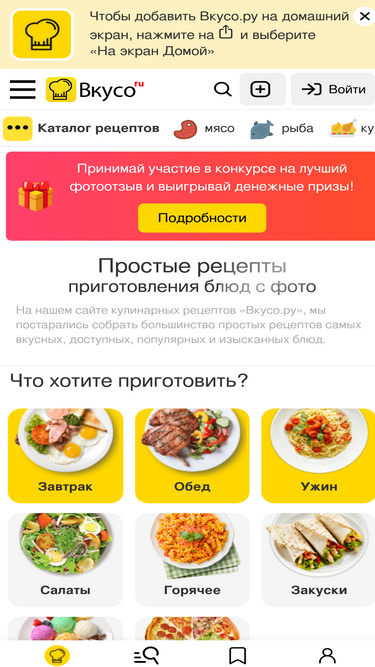 96%крупнейшая база из свыше 114 тысяч кулинарных рецептов с удобной системой поиска, рецепты около 100 кухонь народов мира, много рецептов с фото, видео, пошаговым описанием приготовления.