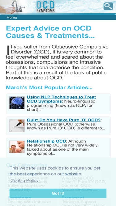 99%here you'll find comprehensive information and advice on ocd, obsessive compulsive disorder. the symptoms, potential causes and alternative treatments are discussed in detail.