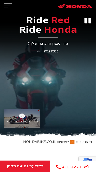 92%כל דגמי האופנועים, הקטנועים ואופנועי השטח של הונדה מחכים לכם באתר Honda Bike. וגם קהילות האופנוענים של הונדה, ביגוד הונדה מקורי וחדשות ואירועים מהעולם המוטורי.