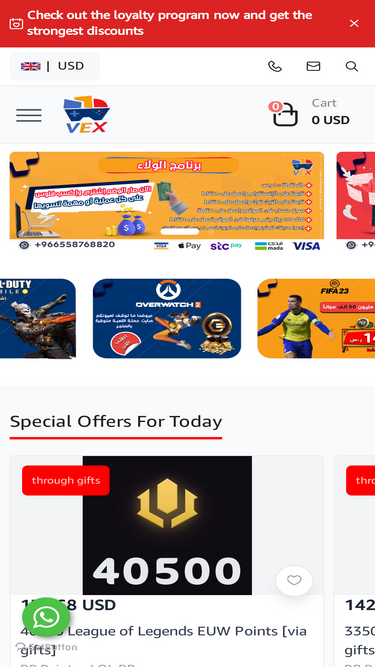 87%أكبر وأضخم متجر الكتروني لبيع الألعاب الإلكترونية ومرفقاتها وبأرخص الأسعار عالميا ندعم جميع الدول العربية وتستطيع الدفع عن طريق العديد من طرق الدفع المتعددة والفريدة ومتوفر دعم فني متخصص متواجد 24 ساعة لمساعدتكم إذا احتجتم أي شيء من بطاقات شحن لجميع المنصات وشحن عملات العاب الكترونية ومفاتيح لبرامج ومواقع بأسعار رخيصه