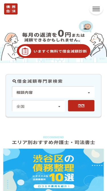 100%自己破産・個人再生・任意整理・代表破産/倒産、銀行借入が返済できず破産検討中の事業主様など、各状況にあわせた地域の専門家がご相談にのります。【無料】借金減額診断 実施中!かんたんな質問に答えるだけ!