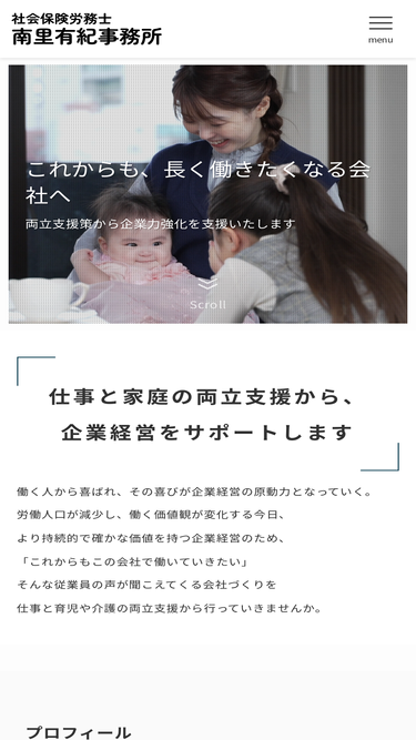 75%仕事と育児や介護の「両立支援」に強みをもつ社労士南里有紀事務所のお問い合わせフォームになります。企業の従業員の採用や定着率アップといった人事労務の経営課題に対して、「両立支援」からサポートします。
