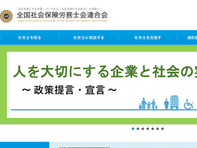 86%全国社会保険労務士会連合会の公式ホームページです。連合会は、社会保険労務士(社労士)の品位を保持し、その資質の向上と業務の改善進歩を図るため、社会保険労務士会(社労士会)及び社労士の指導、連絡、登録に関する事務を行うほか、社会保険労務士試験(社労士試験)事務及び代理業務試験事務を行うことを目的としています。