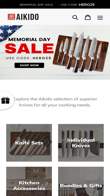73%The Signature 5-Piece Set strikes a brilliant balance between form, function, and design.Crafted with the highest quality materials, each knife has been carefully designed to help you create culinary masterpieces in the kitchen. Your browser does not support our video. We’ve chosen the 5 most versatile knives as part of our signature set. With these 5 knives, you’ll be able to do everything in the kitchen, from hulling strawberries to slicing a turkey like a professional chef. Explore Each Knife in the Set ~END SET DESCRIPTION~ ~Knife DropDown Labels~ 8" Chef Knife,https://cdn.shopify.com/s/files/1/0082/0907/2199/files/Chef.png?v=1649908256; 7" Santoku Knife,https://cdn.shopify.com/s/files/1/0082/0907/2199/files/7_Santoku_7fb802f7-157d-4795-8f4a-025e35aa03d4.png?v=1649908256; 5" Utility Knife,https://cdn.shopify.com/s/files/1/0082/0907/2199/files/Utility.png?v=1649908256; 5" Santoku Knife,https://cdn.shopify.com/s/files/1/0082/0907/2199/files/5_Santoku_bf1350d3-e478-4798-90a0-eff5c2830cee.png?v=1649908256; 3.5" Paring Knife,https://cdn.shopify.com/s/files/1/0082/0907/2199/files/Paring.png?v=1649908256 ~End Knife DropDown Labels~ ~Knife 1 Description~The Aikido 8-inch Chef Knife is one of the most versatile knives to have in your kitchen. With its broad and sharp blade, it is a multi-purpose knife used for a variety of kitchen tasks...and it handles them with incredible ease!This knife instantly becomes an extension of your hand when you pick it up. It is well-balanced and maneuverable and yet still up to the toughest of tasks thanks to the high quality stainless steel blade. Perfectly suited for:- Dicing onions- Chopping herbs- Crushing garlic- Slicing meats of all varieties- Chopping nuts- And anything else you can throw at it!Dimensions: 13 " x 1.6 "Weight: 7 oz ~End Knife 1 Description~ ~Knife 2 Description~Our 7-inch Santoku knife will quickly make you the master of your cutting board. Like it's smaller sibling, the 5-inch Santoku knife, the 7-inch var