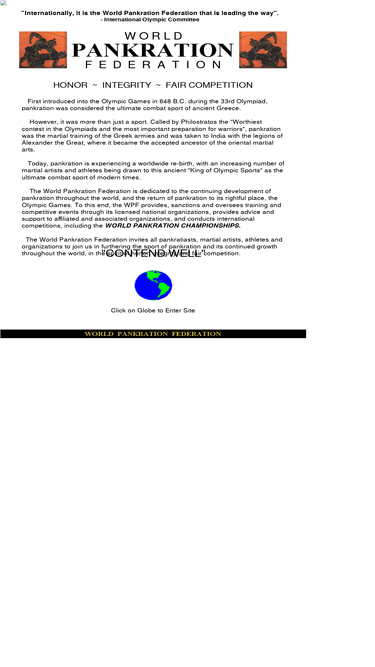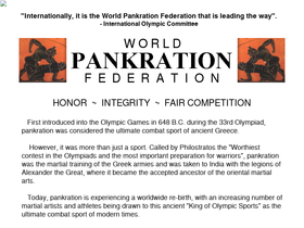 in competitive sport pankration, the international olympic committee states that 'on the international level, it is the world pankration federation that is leading the way' in the quest to return pankration to the olympic games.the world pankration federation is the world sanctioning body dedicated to returning pankration - the ultimate combat sport - to the olympic games.