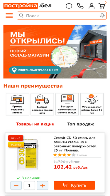Интернет-магазин стройматериалов и инструментов Строймаркет KSK. Более 180 000 товаров с доставкой по всей Беларуси. Наличный и безналичный расчет. Рассрочка.