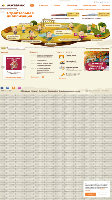 92%«Материк» — первый в Минске строительный гипермаркет формата DIY, соответствующий высоким стандартам обслуживания европейского уровня. Гипермаркет строительных материалов, товаров для дома и сада