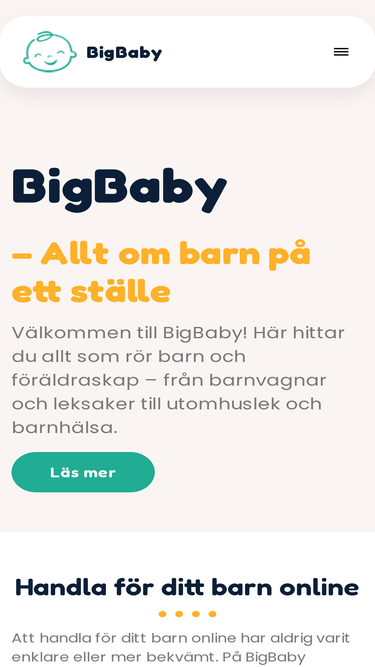84%välkommen till bigbaby! här hittar du allt som rör barn och föräldraskap – från barnvagnar och leksaker till utomhuslek och barnhälsa.