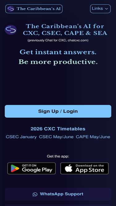 91%AI for SEA, CAPE, CSEC, Past Papers & University & now — make your own AI for your classes. Reliable Artificial Intelligence — made for the Caribbean.