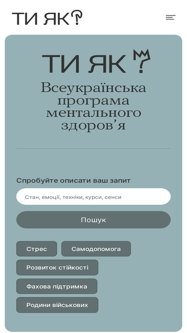 97%Платформа з доказовими техніками самодопомоги, верифікованими рекомендаціями від професіоналів, гарячими лініями і сервісами онлайн- та офлайн психологічної допомоги.