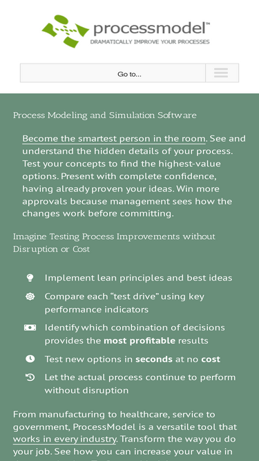 52%This is no longer the latest version of ProcessModel, see the changelog for more information. Version 6.0 provides great new features to improve your transformational process improvement. Make your case easier with ProcessModel's incredible new reporting, non-expiring trials, and better documentation features. See the new capabilities: Wow, look at those reports! Custom reports allow
