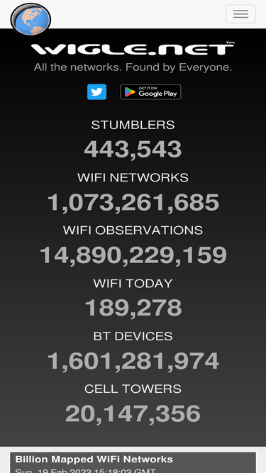 maps and database of 802.11 wireless networks, with statistics, submitted by wardrivers, netstumblers, and net huggers.