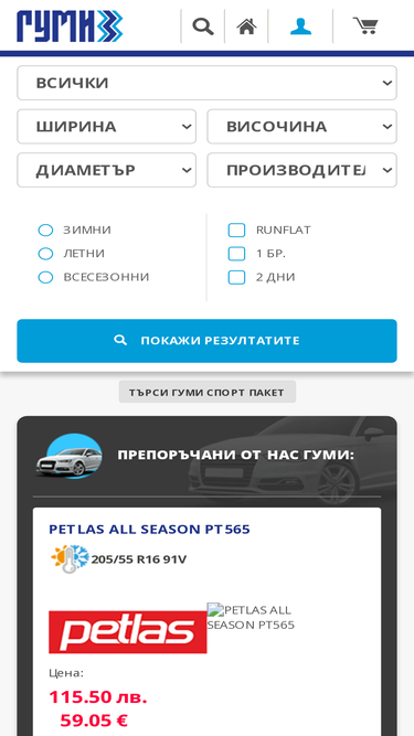 63%Онлайн магазин за гуми и джанти. Летни гуми, зимни гуми и всесезонни гуми за автомобили, джипове и бусове. Над 1000 модела гуми и джанти на изгодни цени