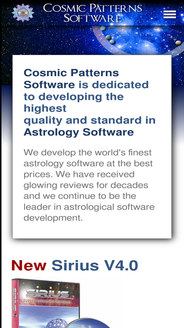 the cosmic patterns software team is dedicated to developing the highest quality and standard in astrology software: sirius, kepler, pegasus, and bindu. we develop the world's finest astrology software at the best prices. requests and suggestions from our customers drive our software development.
