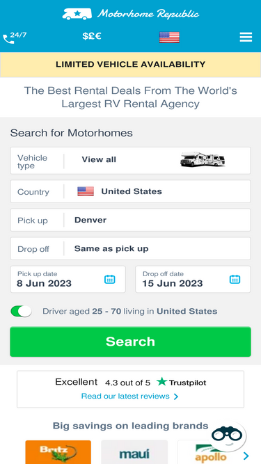 100%Looking for a campervan & RV rental in Denver? Explore the city's surroundings on an unforgettable road trip. 24/7 assistance & free cancelation!