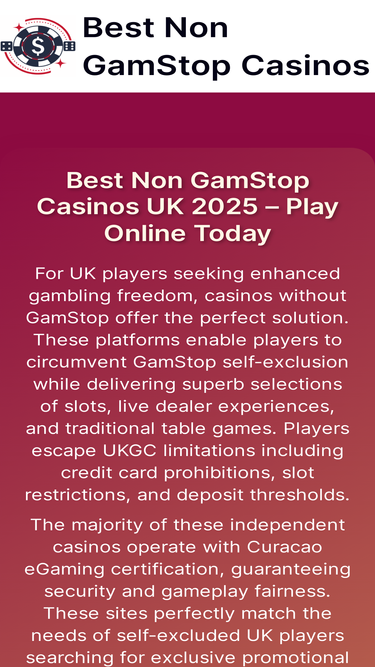 Play at the best Non GamStop Casinos UK in 2025. Get massive bonuses, secure payments, and top-rated online entertainment!