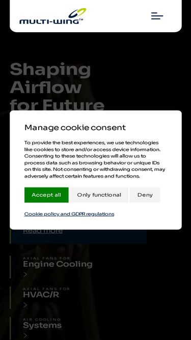91%at multi-wing, we solve the most complex air-moving demands through axial fans and impellers. a global company, headquartered in denmark, with worldwide reach and local presence.
