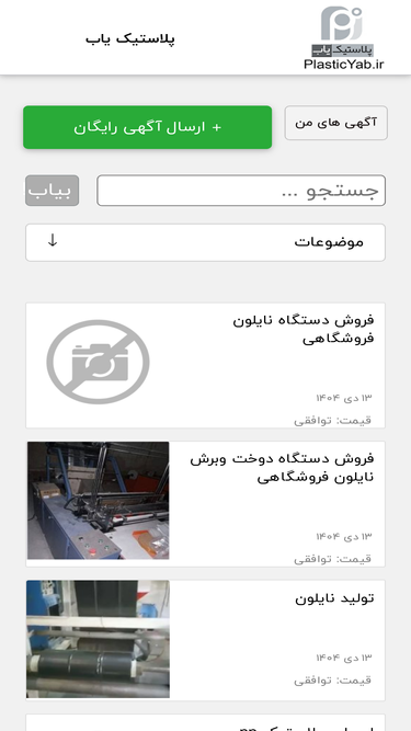 32%و قیمت کارکرده و نو سایت جامع صنعت پلاستیک که فروش دستگاه و ماشین الات پلاستیک مانند تزریق پلاستیک بادی و تولید نایلون و لوله و بازیفت پت و آسیاب پلاستیک و همچنین مواد اولیه صنعت پلاستیک مانند مستربچ و مواد گرانولی و اسیابی و خدمات تعمیر وو تزریق پلاستیک سبد و قالب تزریق و موارد دیگر در سایت جامع صنعت پلاستیک
