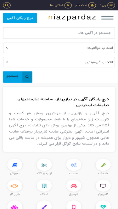35%تماس با تبلیغات اینترنتی نیازپرداز - نیازپرداز در مورد محتوای آگهی های درج شده پاسخگو نمی باشد، لطفا در مورد هر آگهی با آگهی دهنده آن تماس بگیرید