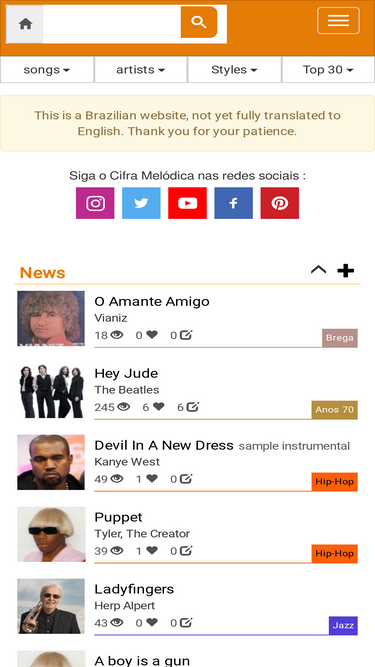 letras de músicas cifradas para violão e guitarra, com os desenhos dos acordes utilizados em cada música representados graficamente, assim como nas revistinhas de violão. a grande maioria das músicas foram revisadas, eliminando a maioria dos erros nas cifras, ao contrário do que acontece com a maioria dos websites do gênero.