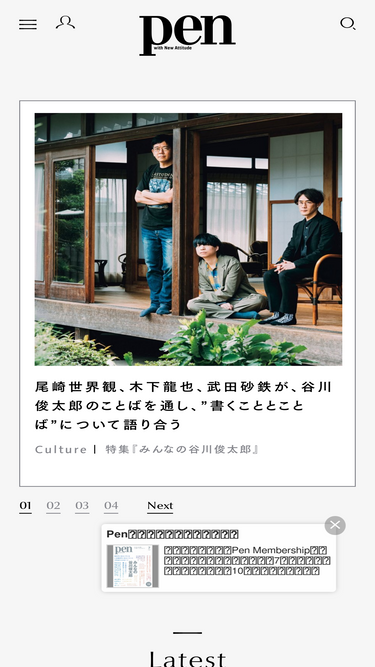 74%雑誌『pen』の公式サイト。ファッションからアートやデザイン、映画や音楽などのカルチャーや日本の伝統工芸、さらには腕時計やカメラといったプロダクトまで。「上質な日常はすぐそこにある」をコンセプトに、さまざまな情報を発信します。