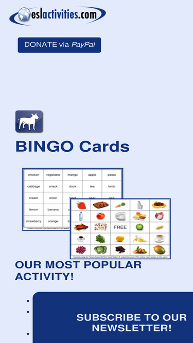 80%eslactivities.com brings you free, adaptable online and classroom activities like bingo, crossword puzzles, and more. These activities can be used for all subject, even math and science because you provide the content and we provide the means for you to engage your students in fun, motivating activities that make them want more!