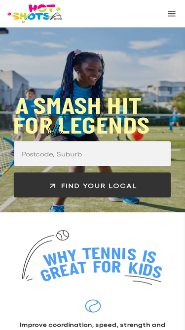 80%Tennis Hot Shots is designed for all kids of age and ability. Played on smaller courts with modified equipment so it is easier for kids to play, and progress.