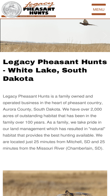 84%Legacy Pheasant Hunts provides South Dakota pheasant hunts 30 miles from Mitchell, SD right off I-90. We have all wild pheasants and offer a genuine and fun South Dakota pheasant hunt!
