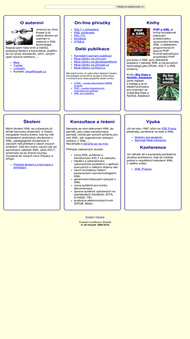 81%velice obsáhlý zdroj informací o tvorbě webových stránek, programování webových aplikací a technologiích xml. domovská stránka jirky koska.