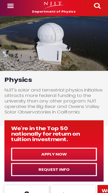 96%njit's solar and terrestrial physics initiative attracts more federal funding to the university than any other program. njit operates the big bear and owens valley solar observatories in california.