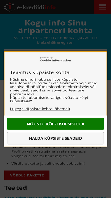 79%ettevõtetele mõeldud andmebaas, mis võimaldab mugavalt hankida äriks vajalikku infot kõigi eesti ettevõtete ja eraisikute kohta. tasuta omanikud, juhatus, seotud ettevõtted, kinnistud, b-kaart