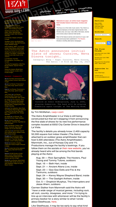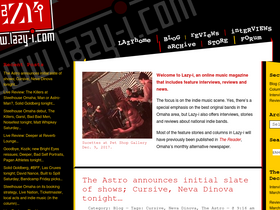 88%Welcome to Lazy-i, an online music magazine that includes feature interviews, reviews and news. The focus is on the indie music scene. Yes, there’s a special emphasis on the best original bands in the Omaha area, but Lazy-i also offers interviews, stories and reviews about national indie bands.