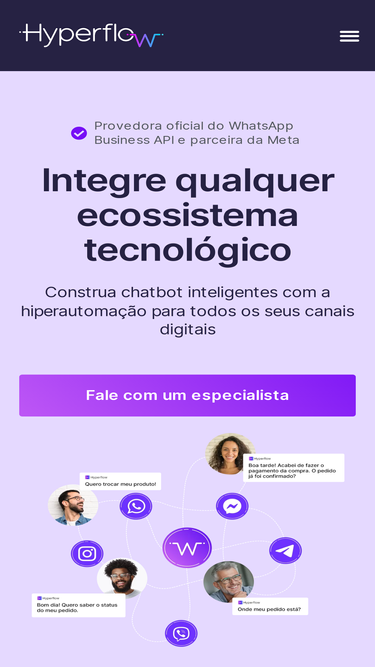 92%Hyper FAQ Encontre respostas para as dúvidas mais frequentes A Plataforma WhatsApp Business Atendimento Integrações iPaaS CPaaS Ainda tem dúvidas? Não encontrou a resposta que procura? Por favor, converse com nossa equipe. Fale conosco