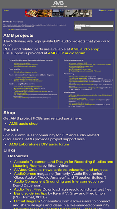 AMB Laboratories DIY audio resources