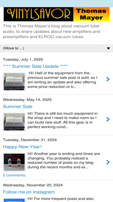 82%This is Thomas Mayer's blog about vacuum tube audio, to share updates about new amplifiers and preamplifiers and ELROG vacuum tubes.