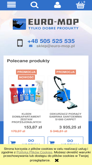 94%szukasz sprzętu do sprzątania? zapraszam do euro-mop.pl. w ofercie znajdziesz profesjonalne mopy, wózki, odkurzacze, maszyny i urządzenia dla firm. euro-mop