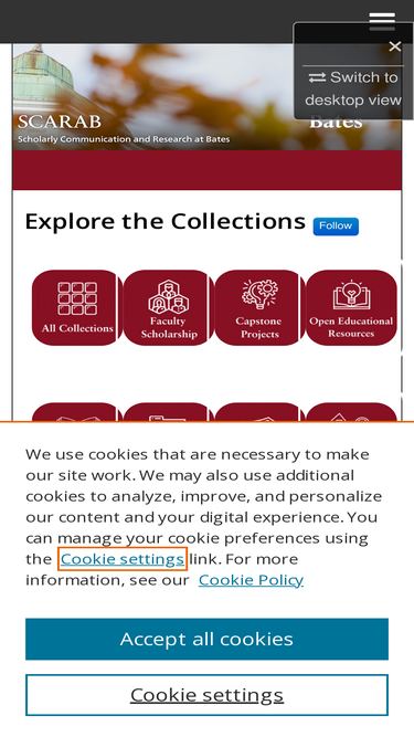 77%scarab (scholarly communication and research at bates) is the institutional repository for scholarly and creative works produced by faculty, students and staff. scarab has a dual role in both promoting access to the college's scholarly output and ensuring its long-term preservation. the repository is sponsored and administered by information and library services.