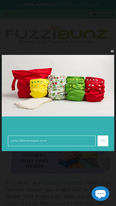 100%FuzziBunz Pocket Diapers FuzziBunz Pocket Diapers are hands down the softest diapers you will ever put on your baby. Invented by a mother of 3, they were designed to end diaper rash and make cloth diapering easier to use for the modern mom. Already have inserts to use with your FuzziBunz at home? No problem! Order them empty or add either a charcoal insert or microfiber insert to your order. FuzziBunz come with an adjustable elastic sizing system (unlike other brands) that allows for maximum adjustability, a custom fit, a clean look, and a happy mom and baby! No leaks, No Rash, No Waste! Choose from two sizes. "First Year" for newborns and younger babies or our "One Size" for babies past 3 months of age. First Year - 7-25 lbs - 0-18 Mo 2 Microfiber inserts included Skeptical? Just read what other moms like you have to say about FuzziBunz Cloth Diapers.