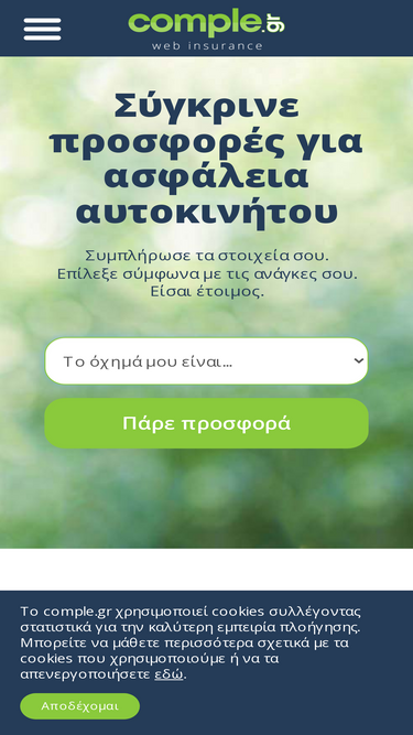 100%Σύγκρινε ασφάλειες αυτοκινήτου και βρες ασφάλεια online με εγγύηση χαμηλότερης τιμής. Σύγκριση ασφάλειας αυτοκινήτου, μηχανής, κατοικίας, υγείας, σκάφους- COSMOTE Insurance