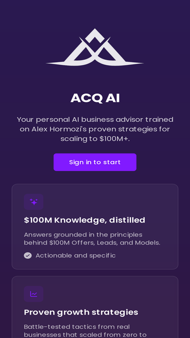 Your personal AI business advisor trained on Alex Hormozi's proven strategies for scaling to $100M+