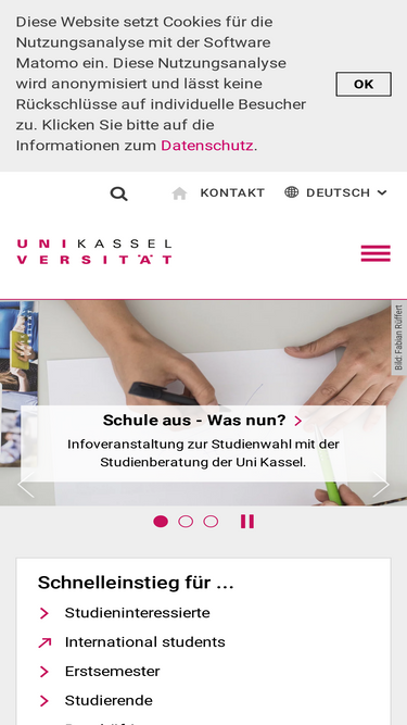 56%beginne einen neuen lebensabschnitt: komm in die documenta-stadt kassel. studiere an einer jungen uni. hier ist viel in bewegung. heute für morgen: natur, technik, kultur, gesellschaft