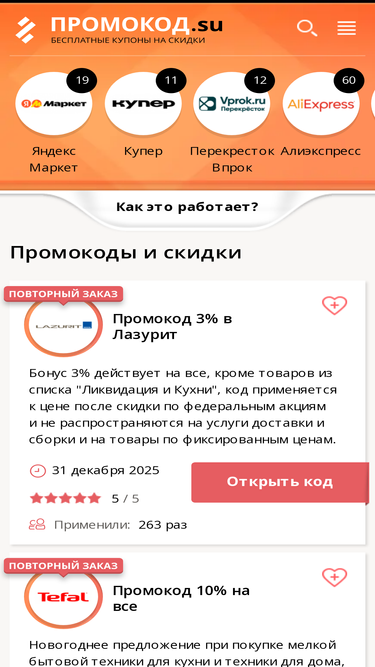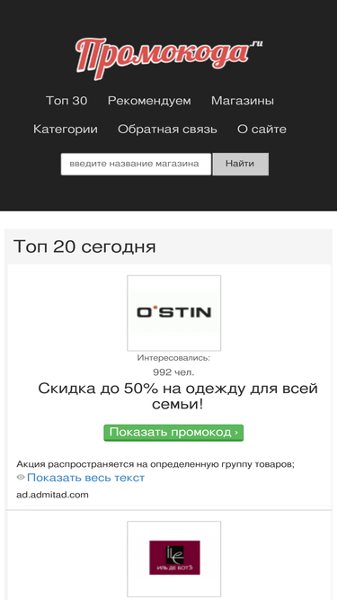 100%уникальные предложения промокодов и купонов на скидку в брендовых инетрнет-магазинах рунета