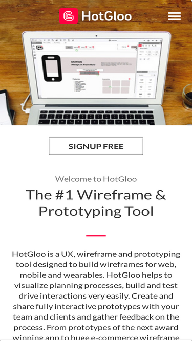72%hotgloo is a ux, wireframe and prototyping tool designed to build wireframes for web, mobile and wearables.